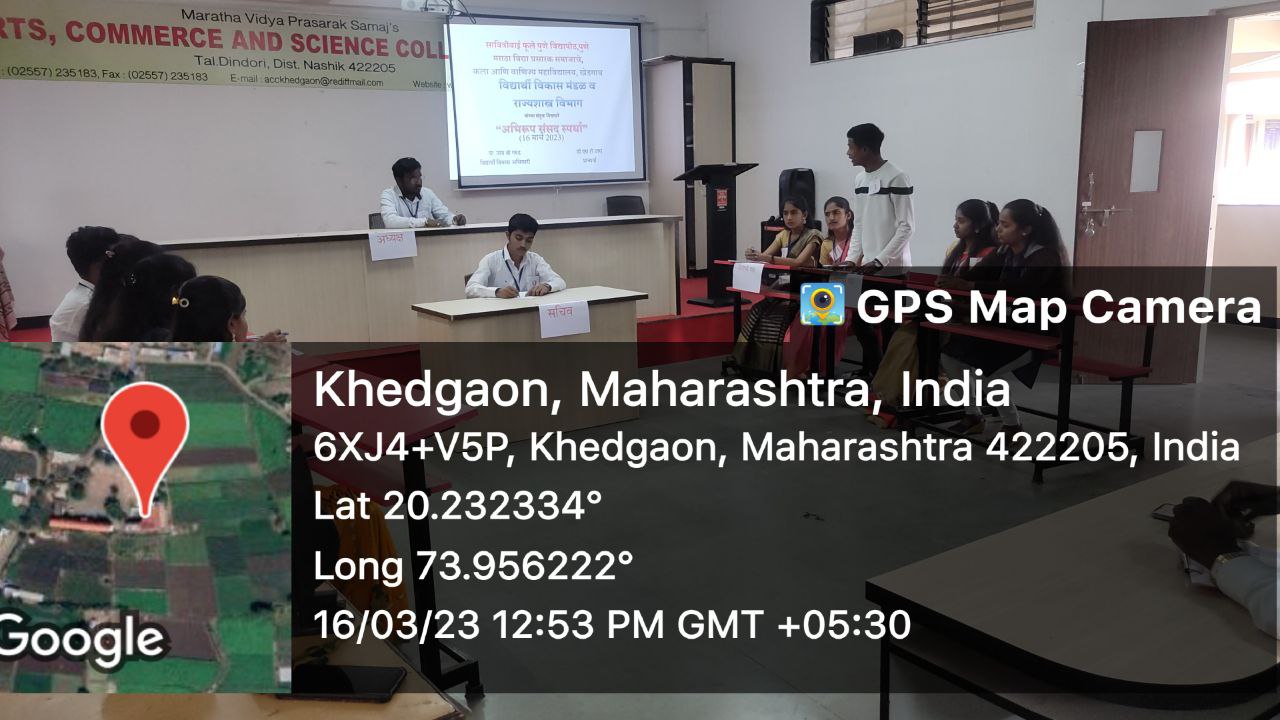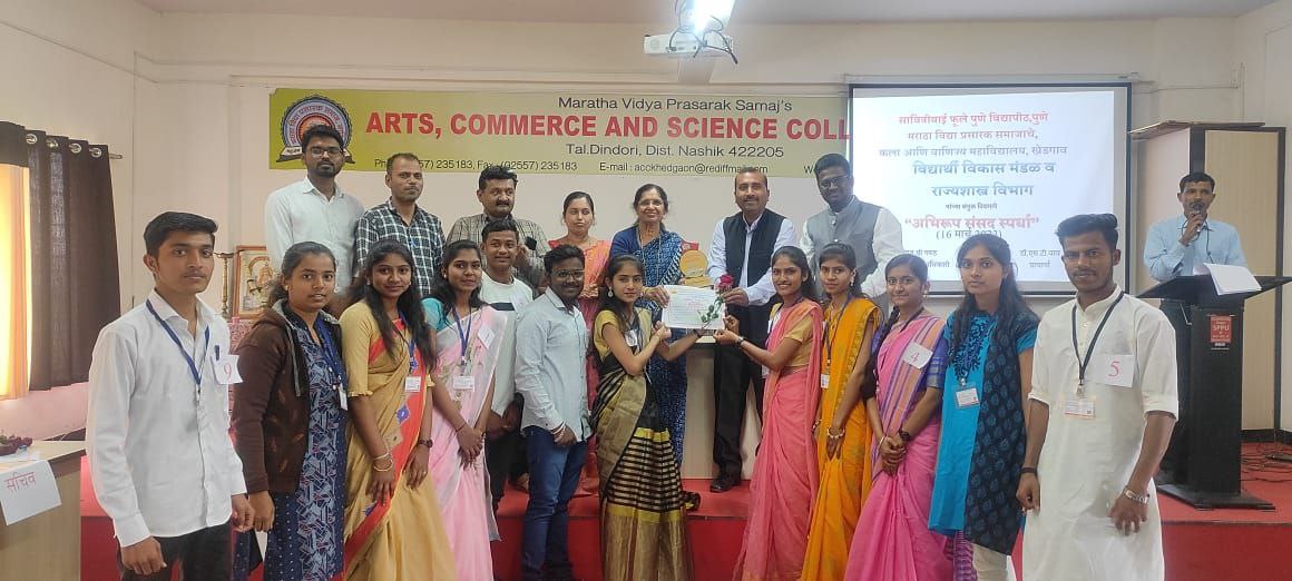 Arts & Commerce College, Khedgaon is run by Maratha Vidya Prasarak Samaj, Nashik, the parent institution. The college was established in June 2003 with only 34 students, a historic city Khedgaon. Khedgaon village is located in Dindori tehsil of Nashik district in Maharashtra, India. It is situated 25 km away from sub-district headquarter Dindori (tehsildar office), 42 km away from district headquarter Nashik, 30 km from Ojhar (Nashik) Airport and 15 km from Pimpalgaon Baswant which is one of the largest (Onion, tomato etc) market in India. It is approachable by road from the Nashik. Khedgaon is achieved fame as one of the important Grapes producing village and it is famous grapes wine hub. And it is also famous for Cattle Market in Nashik District. The college was established with view of providing higher education to the students in the surrounding rural and tribal area and also with the motto “Bahujan Hitay Bahujan Sukahay”. The college started with two Faculties and only with few students in 2003. Strength of the college students has been consistently increasing over the year.