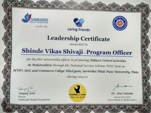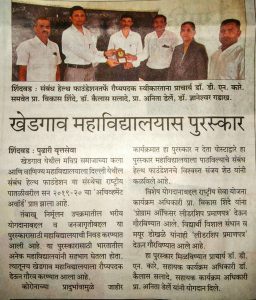 News in Local “Pudhari News Paper” on Achievement Award (Silver Medal) for Sensitizing student for not consume Tobacco